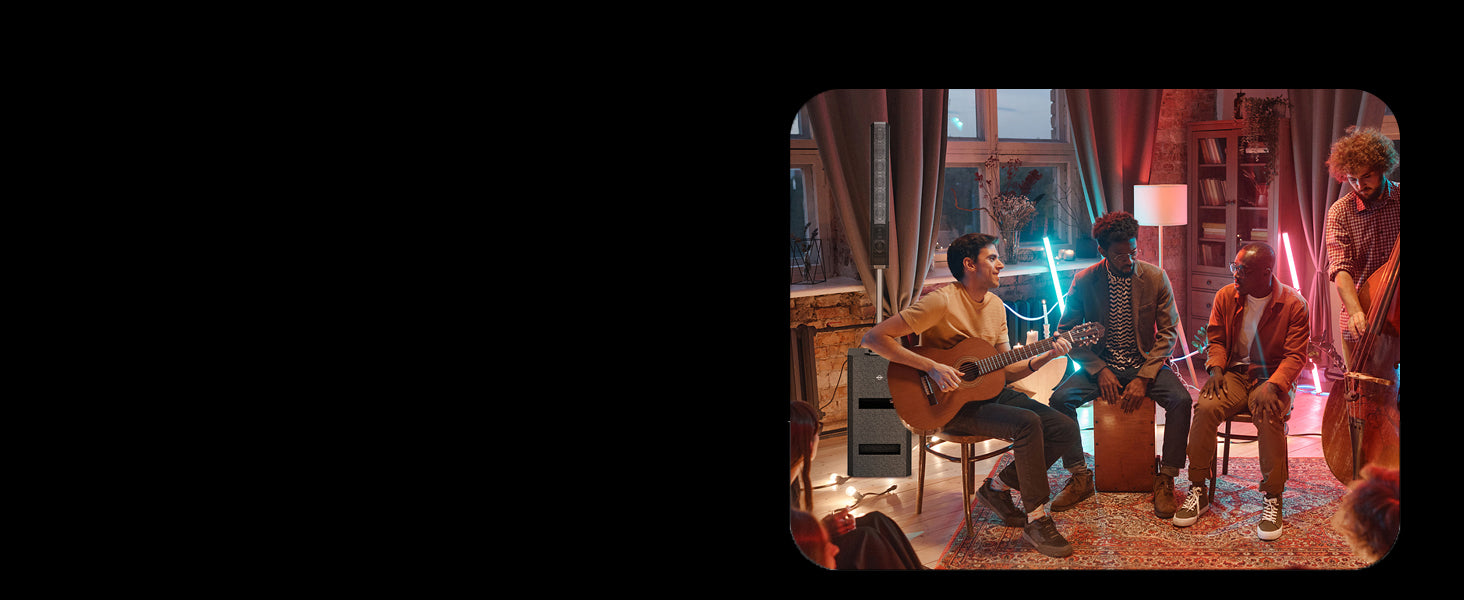 Tall design, tight bass response. An all-in-one system that saves space without skimping on power.