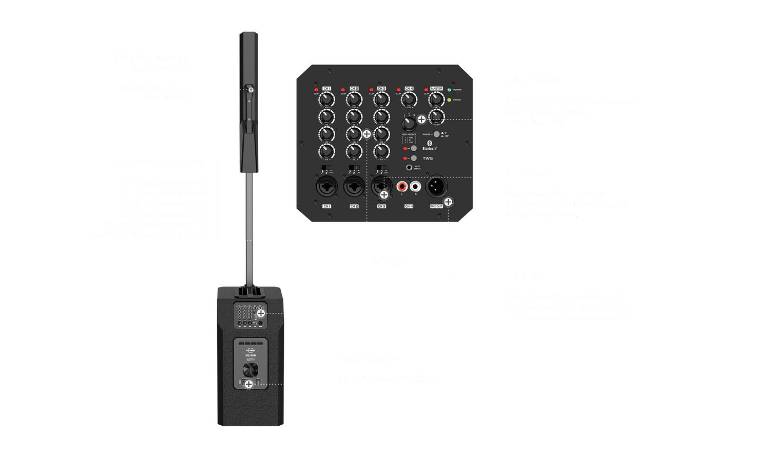 We have upgraded the current EQ-800 with a superior configuration compared to its predecessor but at an affordable price. Specifically, we have equipped higher-quality NEO speakers and magnified RMS of the entire PA system, bringing it up to 850W!