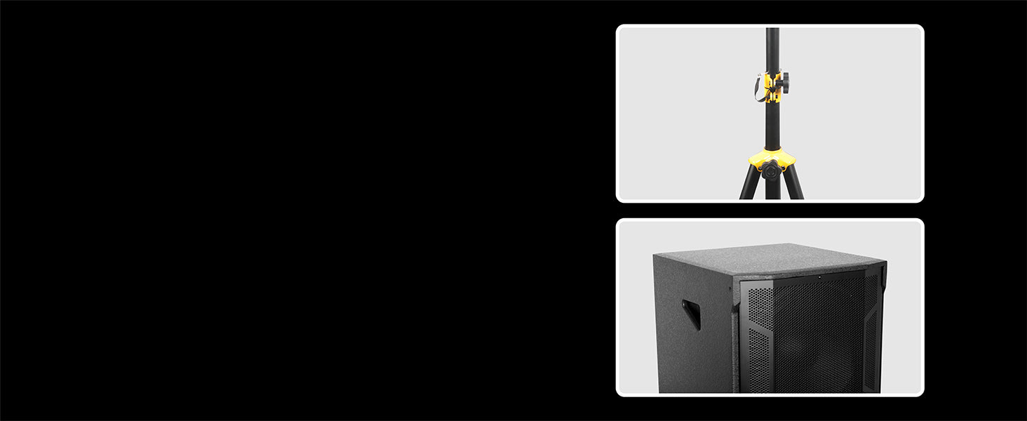 • Portable Split Design (19.4lbs Line Array / 46.95lbs Subwoofer) + Adjustable 35mm Pole (63"-88") – tool-free assembly, easy to carry & transport.