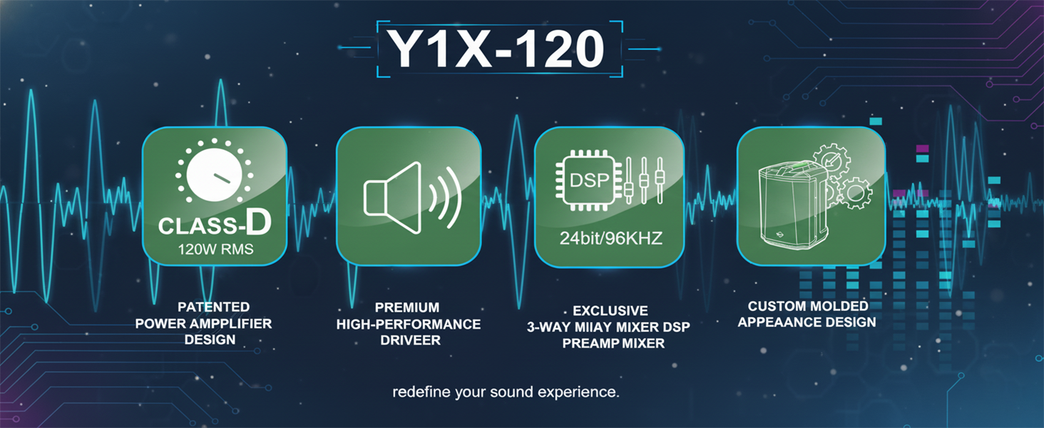 Wherever musics needed, the Y1X-120 delivers114dB, loud, clear, powerful. Built on legendary "big-sound, small-box" pro engineering, this all-in-one PA offers concert punch, club clarity, festival coverage. The kicker? At 7kg, it fits your trunk, sets up in <2 minsgrab, and battery can offer 10 hours, go, let sound take over.